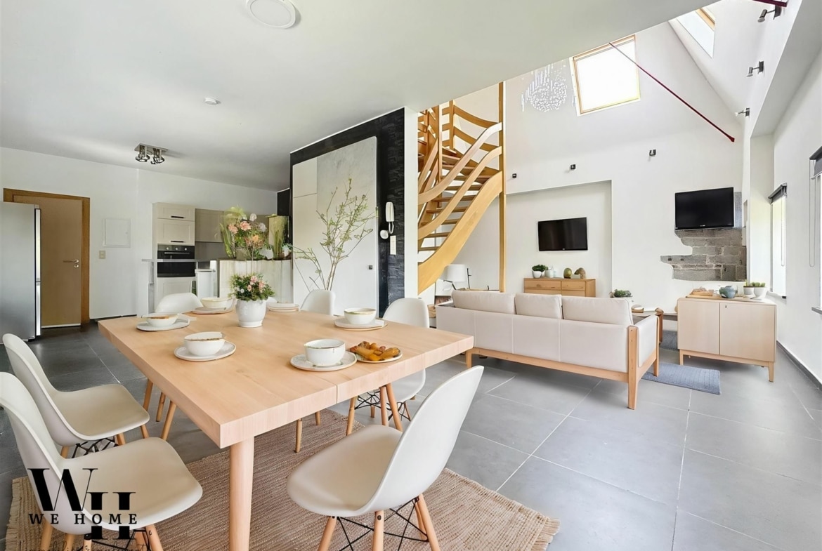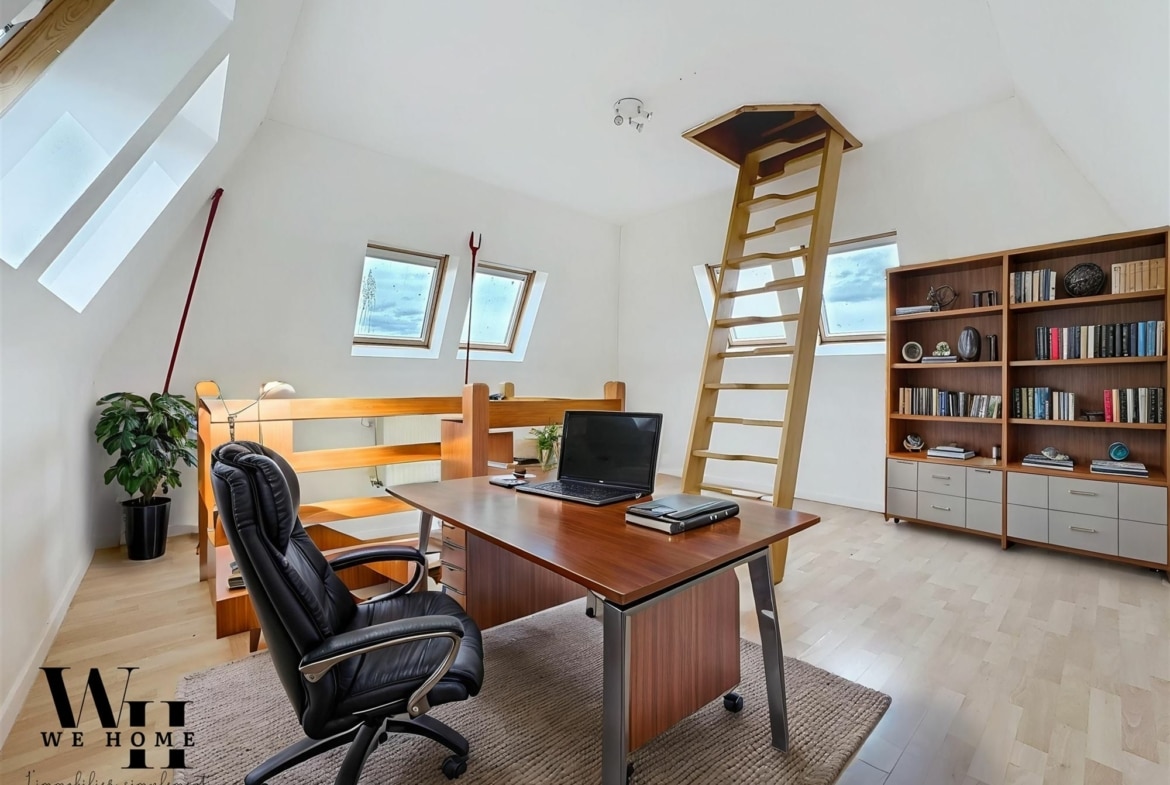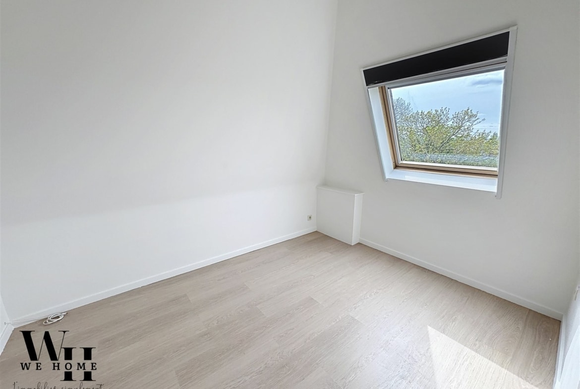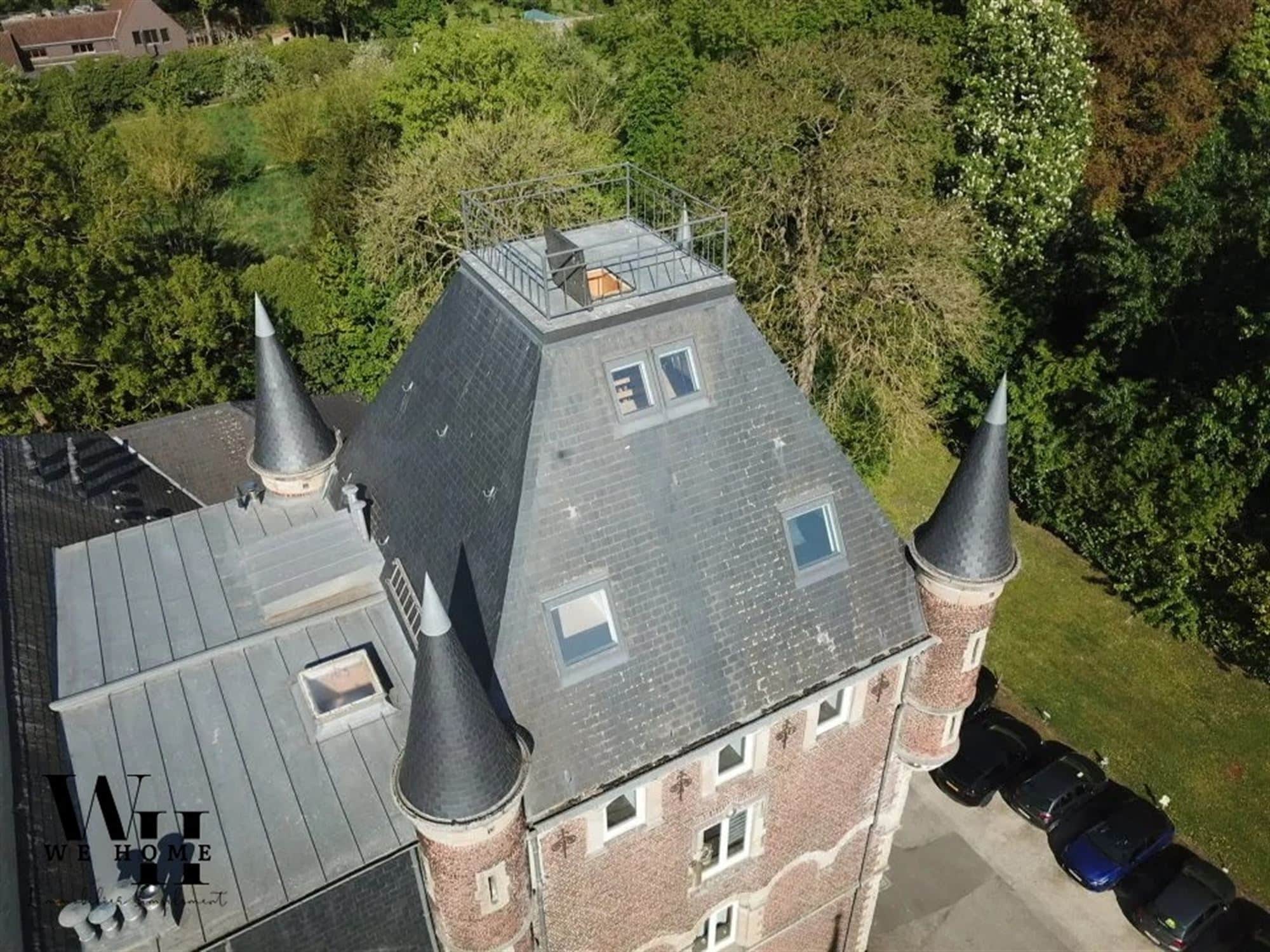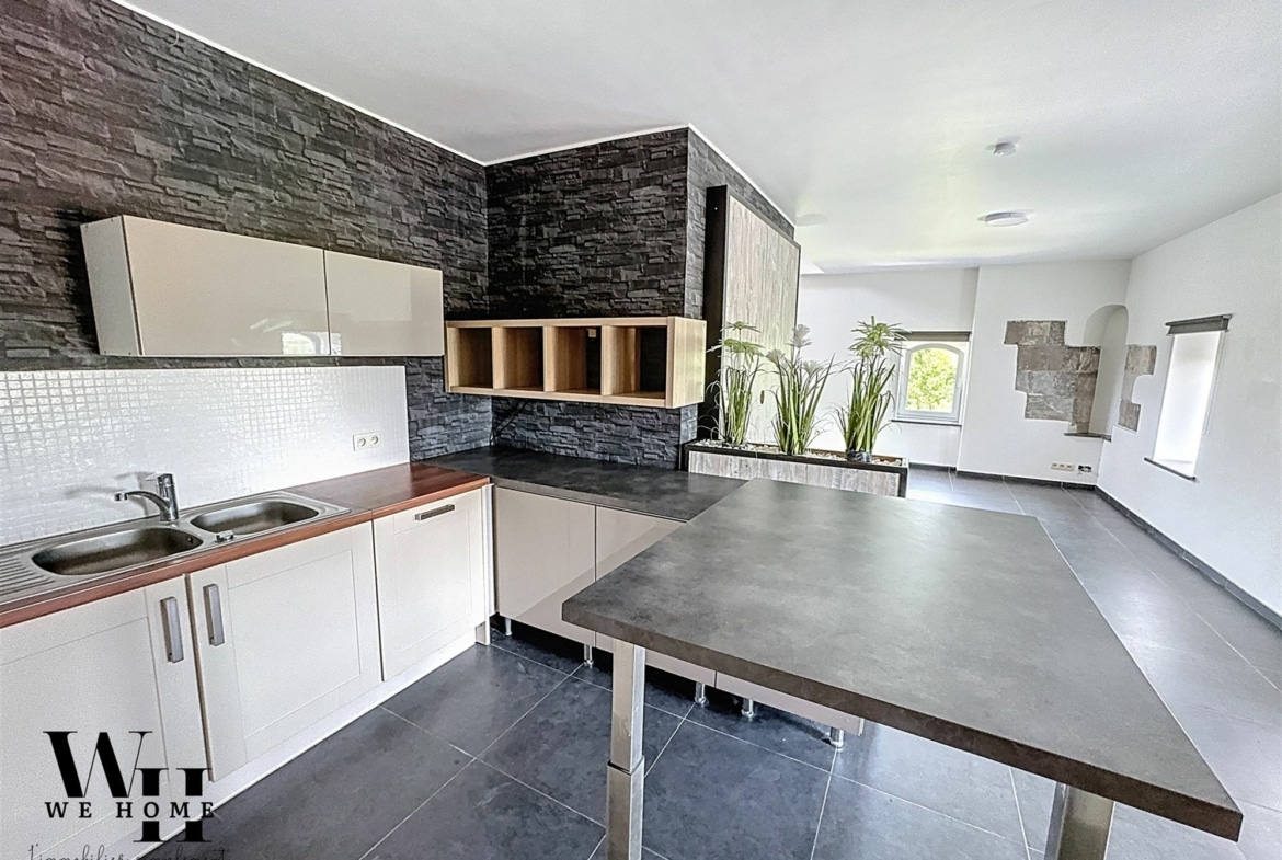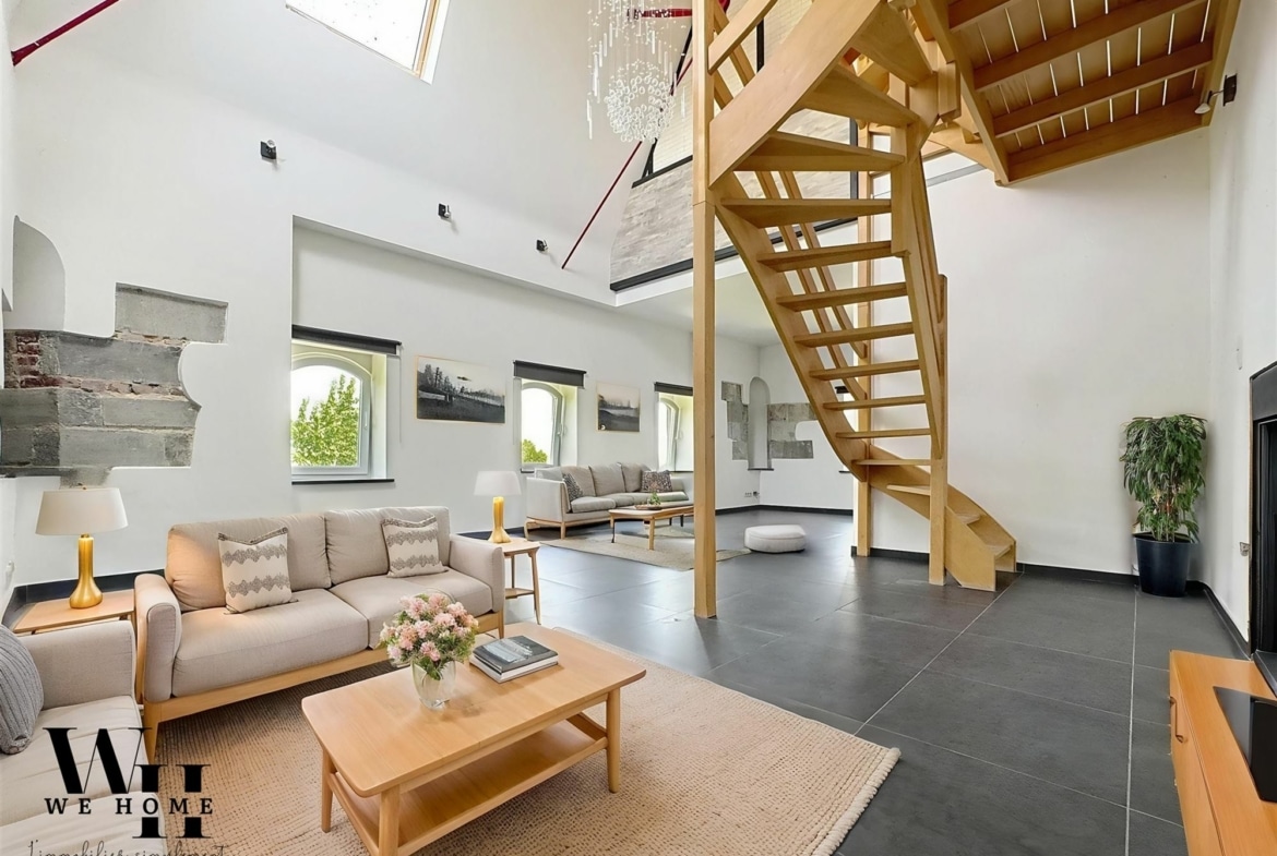Vous avez toujours rêvé de vivre dans un château?  WeHome vous fait découvrir un appartement triplex unique situé au cœur de Courcelles, alliant charme historique et confort moderne. Avec ses 130 m² habitables, ce bien vous offre une vue imprenable et une ambiance lumineuse grâce à ses nombreuses fenêtres.  L’intérieur se distingue par son espace de vie ouvert, comprenant un salon élégant et une salle à manger conviviale sous un plafond cathédral, favorisant une atmosphère aérée et accueillante.  L’appartement dispose de trois chambres (15, 10 et 10m2) et d’un espace bureau de 20m2 avec un accès à une magnifique terrasse offrant une vue panoramique imprenable, un lieu parfait pour se détendre.