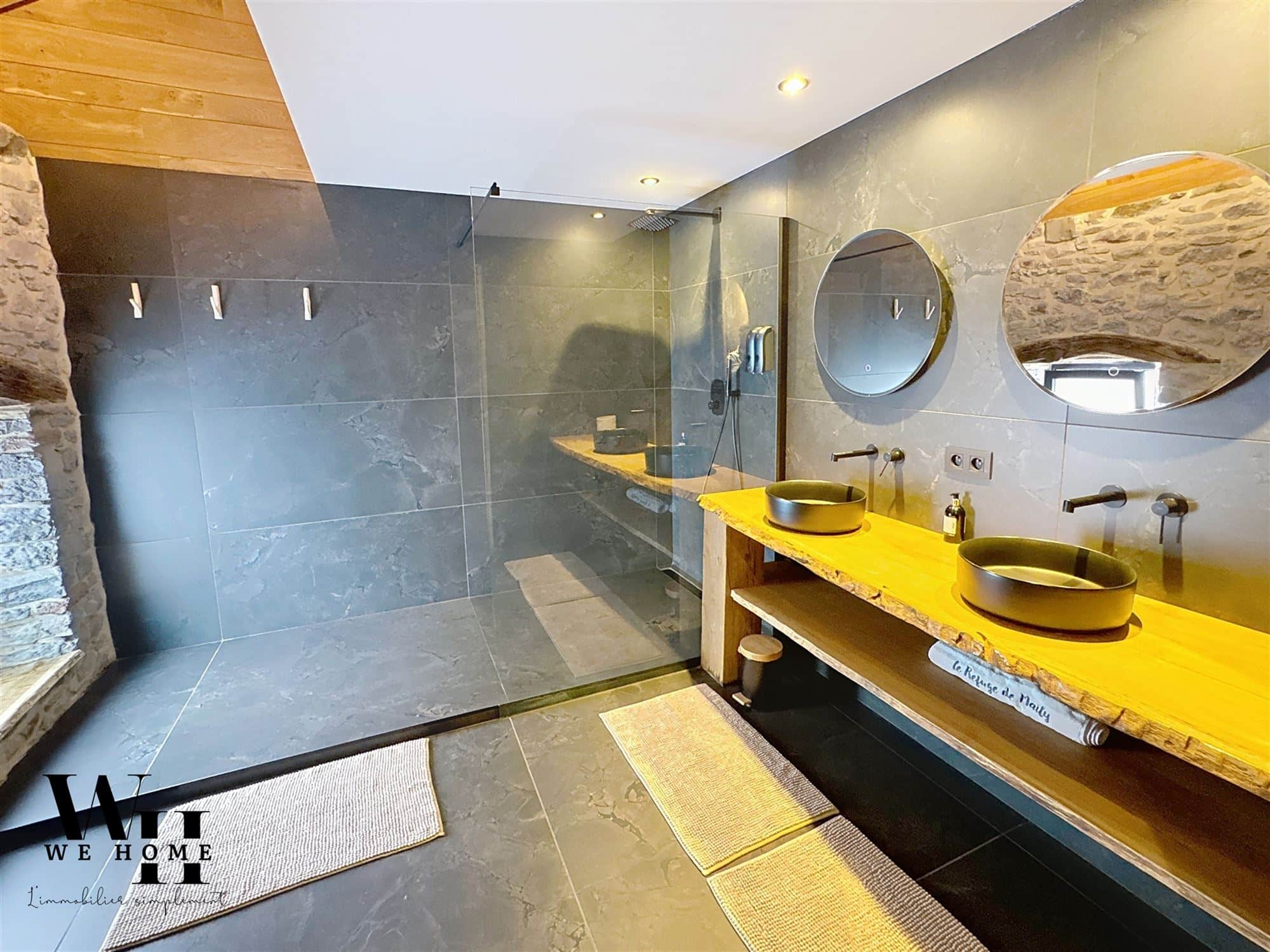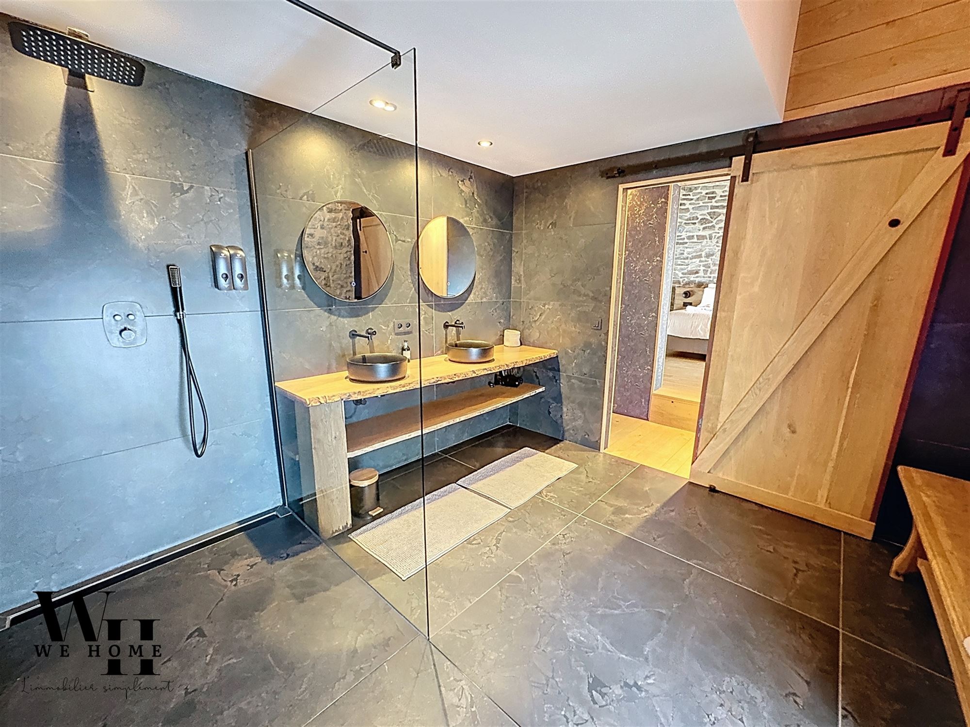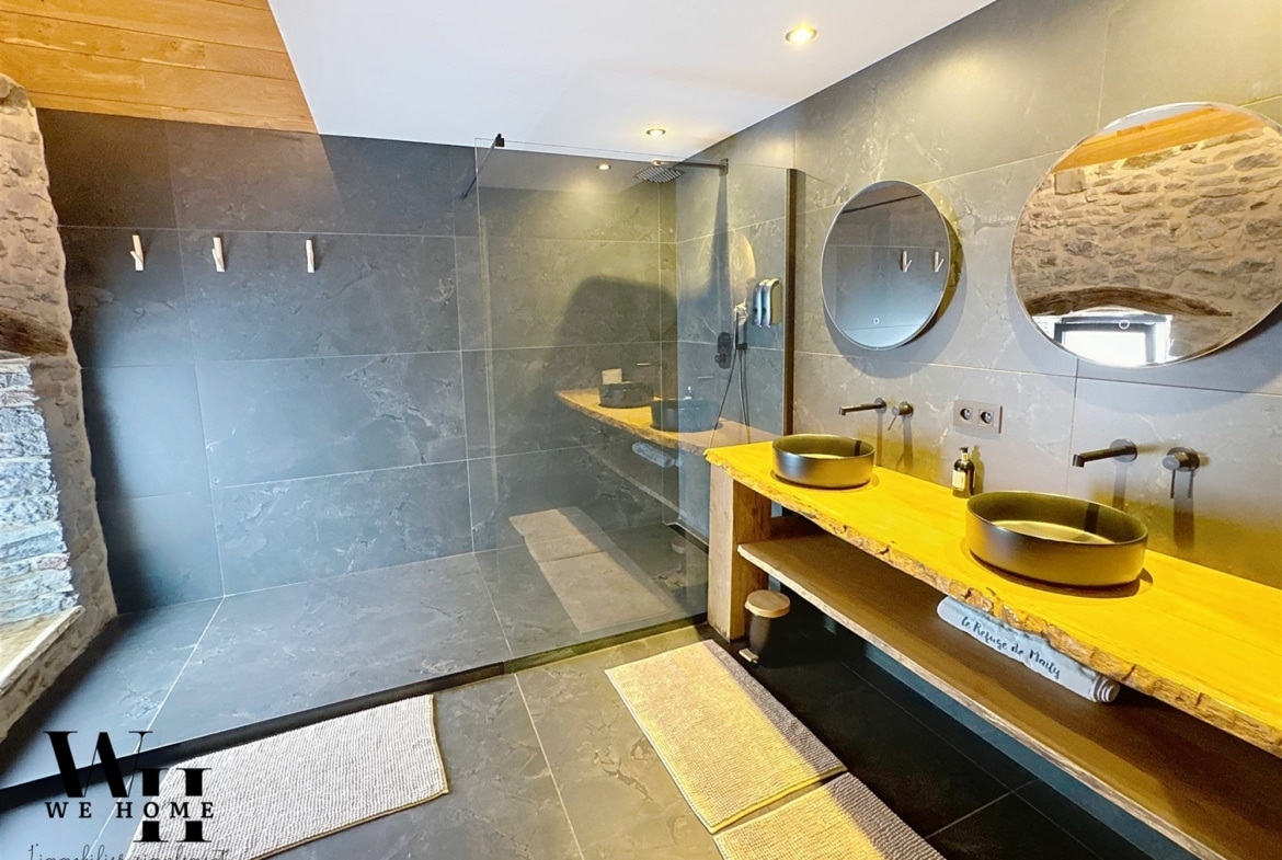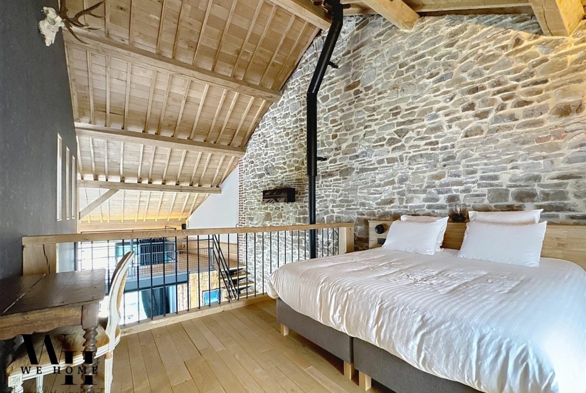 Devenez l’hôte de ce gîte exceptionnel sur les hauteurs de Beauraing où le charme rustique rencontre le confort moderne. A l’intérieur, vous serez séduit par les espaces ouverts, mettant en valeur des matériaux naturels tels que la pierre, le métal et le bois. Deux chambres lumineuses pouvant accueillir jusqu’à 6 personnes, salle de douche spacieuse, cuisine ouverte, jacuzzi professionnel à débordement, hammam/douche et espace buanderie. À l’extérieur, profitez d’un jardin et d’une terrasse plein sud avec sauna. Vous apprécierez également le parking avec borne de recharge et un garage. Entièrement rénové il y a 3 ans, tout a été pensé dans les moindres détails. Pompes à chaleur, chauffage au sol, climatisation réversible, poêle au bois, ballon thermodynamique, 21 panneaux photovoltaïques, domotique et alarme incendie aux normes pompiers. (PEB “A” 51 kWh/m2/an). Cette demeure se distingue par ses installations de bien-être exceptionnelles et son revenu locatif très intéressant (locations courtes durées via plateformes Airbnb et Booking). Vendu meublé et équipé. Possibilité d’acquérir la maison mitoyenne en sus (bail en cours).