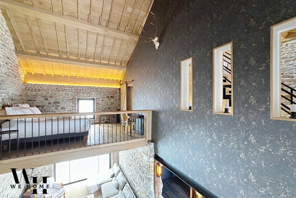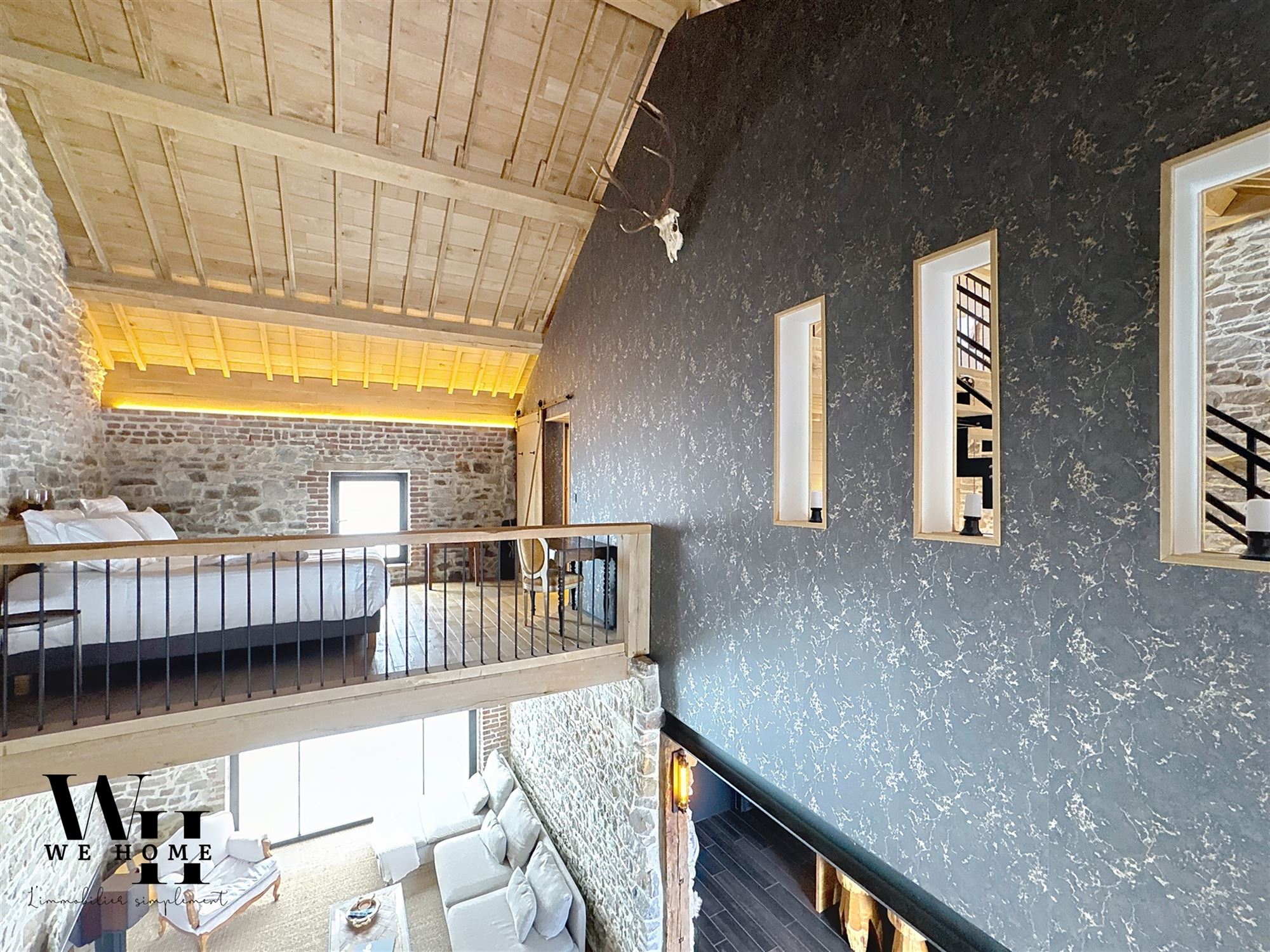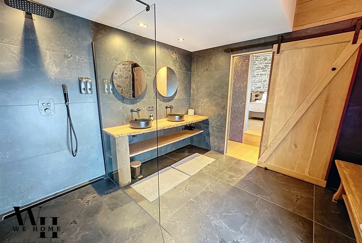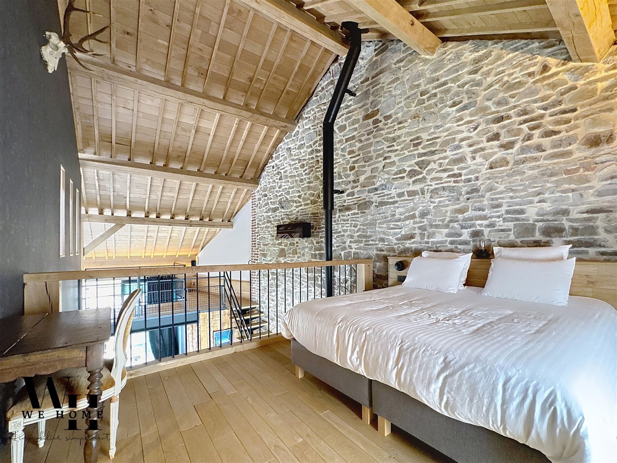 Devenez l’hôte de ce gîte exceptionnel sur les hauteurs de Beauraing où le charme rustique rencontre le confort moderne. A l’intérieur, vous serez séduit par les espaces ouverts, mettant en valeur des matériaux naturels tels que la pierre, le métal et le bois. Deux chambres lumineuses pouvant accueillir jusqu’à 6 personnes, salle de douche spacieuse, cuisine ouverte, jacuzzi professionnel à débordement, hammam/douche et espace buanderie. À l’extérieur, profitez d’un jardin et d’une terrasse plein sud avec sauna. Vous apprécierez également le parking avec borne de recharge et un garage. Entièrement rénové il y a 3 ans, tout a été pensé dans les moindres détails. Pompes à chaleur, chauffage au sol, climatisation réversible, poêle au bois, ballon thermodynamique, 21 panneaux photovoltaïques, domotique et alarme incendie aux normes pompiers. (PEB “A” 51 kWh/m2/an). Cette demeure se distingue par ses installations de bien-être exceptionnelles et son revenu locatif très intéressant (locations courtes durées via plateformes Airbnb et Booking). Vendu meublé et équipé. Possibilité d’acquérir la maison mitoyenne en sus (bail en cours).